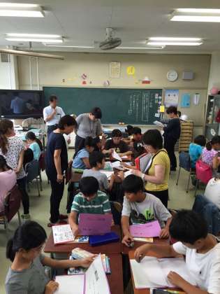 世小研国語部の研究授業が行われました。グループで協力して、50周年記念の新聞を作ります。