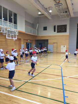 ボールを高く投げ上げて、拍手をしてキャッチ!