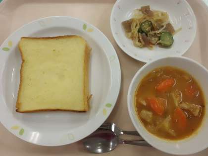 フレンチトースト・牛乳・ボルシチ・こんにゃくサラダ