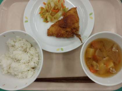 ごはん・牛乳・あじフライ・白菜のおかかかけ・さつまいもとしめじのみそ汁