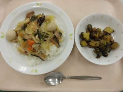 中華丼・牛乳・黒豆入りお豆かりんとう