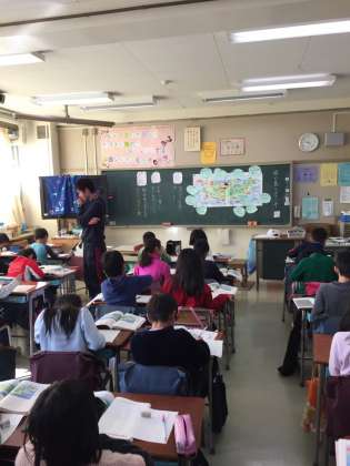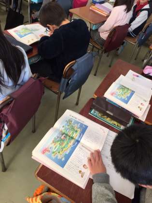 南の島にようこそ。教科書の絵地図を見ながら、案内したいコースを考えます。