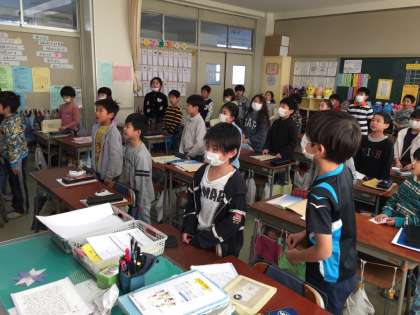 まず、日本語発表に向けて、李白の詩の群読の練習をしました。百人一首の中から一首選ぶ学習です。