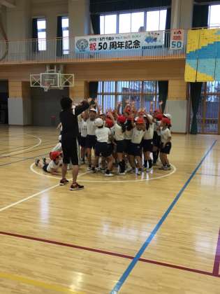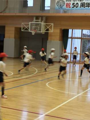 体を温めるための鬼遊びに続いて、小人やボールになりきって、考えながら動きます。