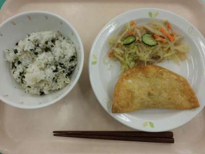 わかめとじゃこのごはん・牛乳・ジャンボぎょうざ・春雨サラダ