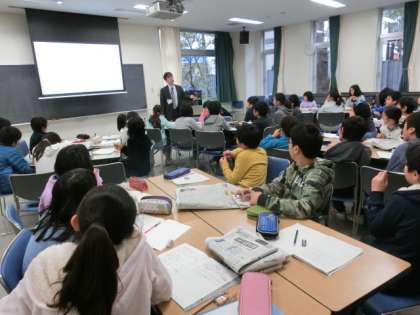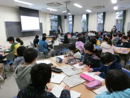 社会の学習では、元新聞記者で玉川大学の中西茂さんをゲストティーチャーとして招き、新聞やインターネットについてお話頂きました。実際に新聞をめくりながら、気になる記事を見つけたり、新聞によって同じ記事の違いを見つけたりしました。また、震災の時の話から必要に応じてメディアを複数使い分けることの重要性を知ることができました。