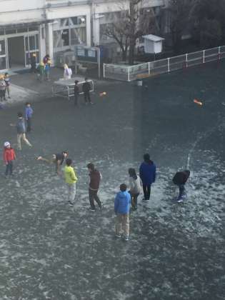 昨日の雪から今日はいい天気になりそうです。朝遊びの子どもたちが使っているのは、スカッドボーイ。