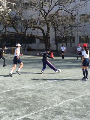 グリッドサッカー。男女で役割を交替しながら試合を進めます。
