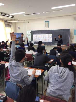 英語支援員のHさんといっしょに、将来何になりたいか、表現の仕方を学んでいます。