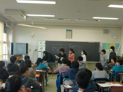 「日本とつながりの深い国々」。班ごとに自分たちが調べた国の人々の暮らしについて、先生役となって説明します。クイズの内容が実にユニーク。