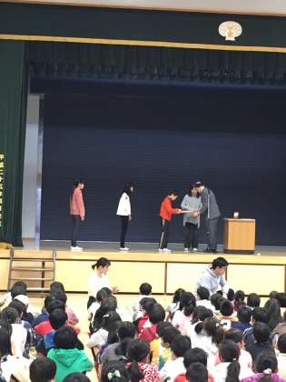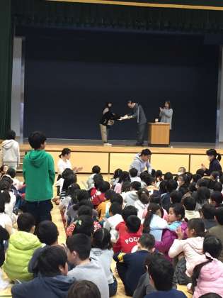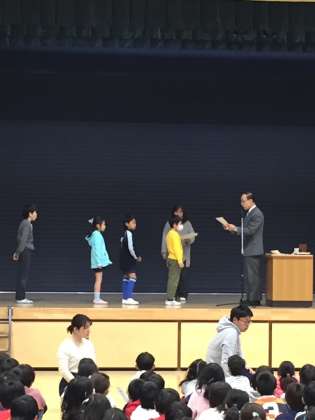 今朝は読書感想文、吹奏楽、科学センター修了の児童の表彰がありました。