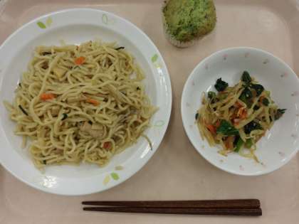 塩焼きそば・牛乳・ナムル・お野菜ケーキ