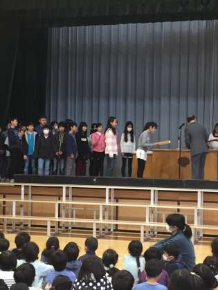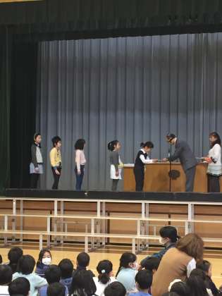 まず区の表彰を受けた吹奏楽団と図書室の本をたくさん読んだ子の紹介がありました。