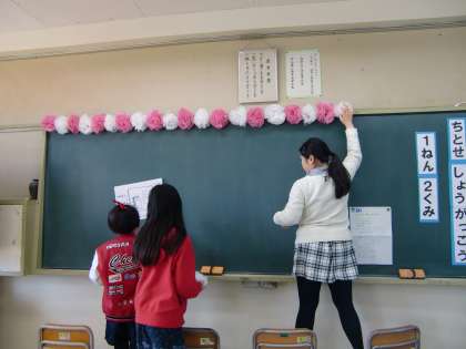 新しい千歳の一年が始まろうとしています。頼もしい新6年生が入学式準備のため力仕事に、飾り付けに、大活躍してくれました。