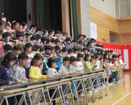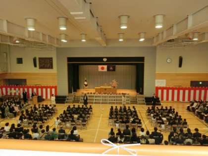 6年生代表の言葉、2年生の歓迎の演技が式を盛り上げました。