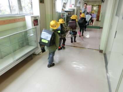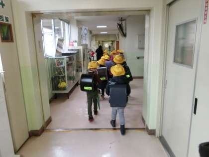 1年生は雨の中での初下校でした!担任の先生の話をしっかり聞き、みんなで安全に下校しました。