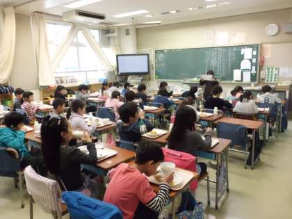 今日から2〜6年生の給食が開始しました。子どもたちはおいしそうに給食を食べていました。1年生は14日(金)から始まります。
