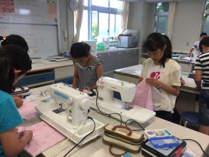 6年生の家庭科は「ペットボトルカバー作り」を学習しています。3組も自分のオリジナルデザインをミシンを使って作成しています。完成が楽しみです。