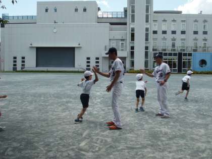 準備運動から投げ方までていねいに教えていただき、子供たちも大満足の1時間でした!