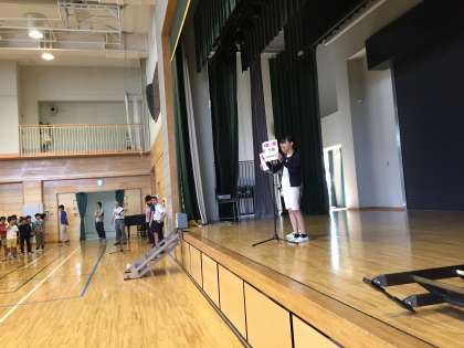 今日の全校朝会でボランティア国際理解委員会の6年生が、熊本地震災害募金のご協力に関するお願いをしました。募金は13、14、15日の3日間の登校時間に実施します。みなさんのご協力をよろしくお願い致します。