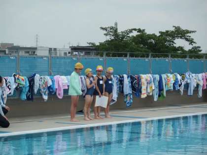3年生は、3・4校時にプール開きを行いました。各クラスの代表が、今夏のめあてを発表して、入水です。少し肌寒いようにも感じましたが、時折、顔を出す太陽に元気をもらいながら、無事、1回目の水泳を終えることができました。各自が立てた目標に向かって、がんばりましょう。