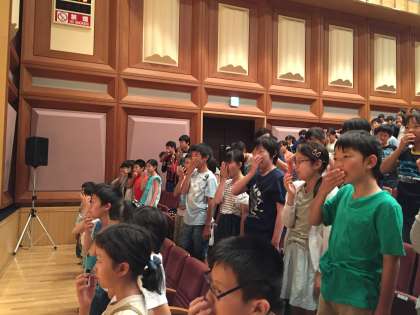 今日の午前中は、古典芸能観賞教室でした。砧区民会館で砧小学校と一緒に狂言の「附子」を実際に体験したり、観賞したりしました。体験では、各学級の代表児童が、台詞を言ったり、茸の動きを実施したりしました。また、「附子」の観賞において、児童は、役者さんの台詞や動きから砂糖を食べたり、掛け軸を破ったりする様子を想像し、狂言の面白さを感じていました。