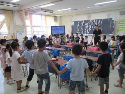 手をつないで、ゲームをしているようです。 みんな楽しそうですね!!