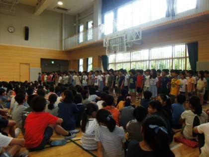 6月19日月曜日、全校朝会にて3年生が日本語発表を行いました。「夏は来ぬ」を暗唱と歌で発表しました。大きな声で上手に発表することができました。