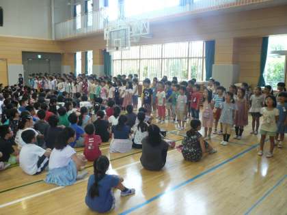 朝会で、初めての日本語発表がありました。