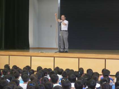 校長先生のお話では、へびのだっぴした皮が紹介され、みんな興味津々でした。