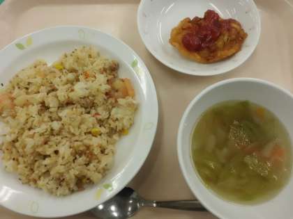ナシゴレン・牛乳・レタススープ・大豆とコーンのフリッター