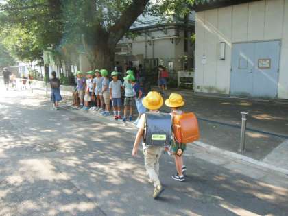今日はふれあいサタデーです。あいさつ運動では、3年生の子どもたちが正門、西門、南門に分かれてあいさつを行いました。