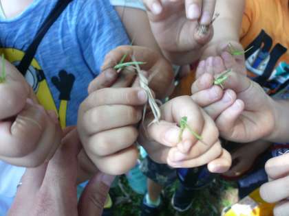 バッタやちょうや、かまきりなどいろいろな虫を見つけたり、きれいにさいた花を見たり、楽しくいろいろなものを見つけることができました。