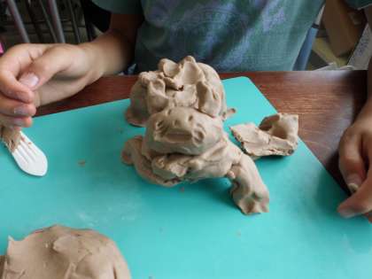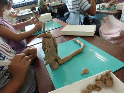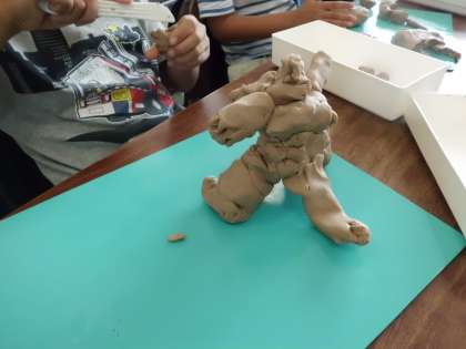 グアナコってどんな生きものかを想像を膨らませて粘土で作りました。