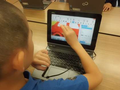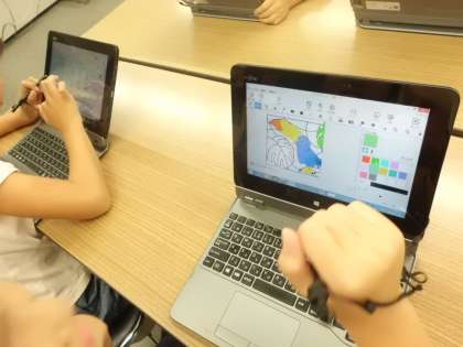 1組は、夏休み前に3年生になって初めてパソコン室を訪れました。パソコンの使い方や注意することを確認した後、お絵かきソフトを使ってマウスになれました。