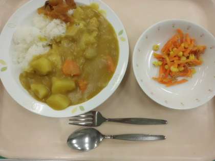 チキンカレーライス・牛乳・福神漬け・にんじんサラダ