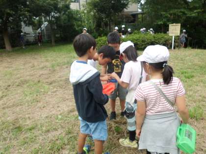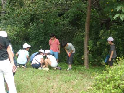 3年生は、みんなの森にこん虫をつかまえにいきました。こん虫は、どんなところを住みかにしているのか、何を食べているのか、などを考えながらつかまえました。1学期のチョウの学習を思い出しながら、様々なこん虫の体のつくりについて学習していきます。バッタやコオロギ、チョウチョなどを捕まえることができたようです。