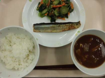 ごはん・牛乳・さんまの塩焼き・わかめのおろし和え・なめこのみそ汁
