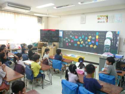 実際に並べ変えてみると、何が一番多くて、何が一番少ないのかがすぐに分かりました。ほかの物でもやってみようということで、後半では好きな生き物調べをして、かずしらべを楽しみました。