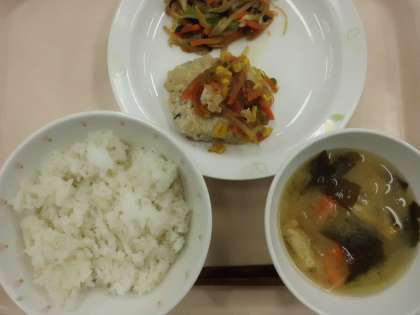 ごはん・牛乳・れんこん入り和風ハンバーグ・おひたし・たまねぎのみそ汁