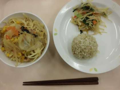 みそコーンラーメン・牛乳・珍珠丸子・野菜の中華風