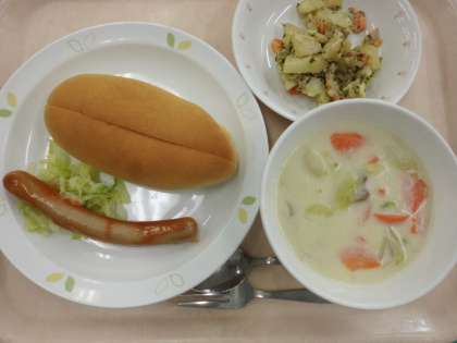 セルフウインナーサンド・牛乳・キャベツのクリーム煮・ベーコンポテト