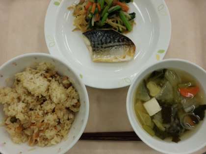 こぎつねごはん・牛乳・さばの塩焼き・おひたし・冬野菜のみそ汁