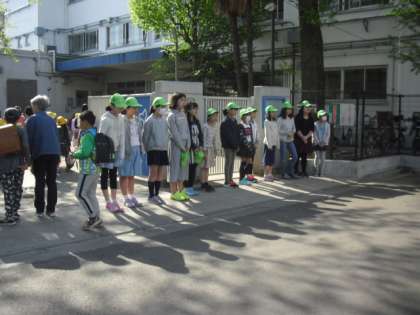 校門での6年生による朝の声かけがはじまりました〜