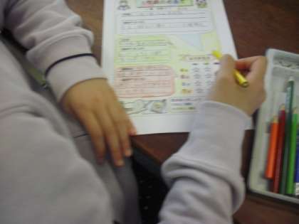 1学期の学習、生活の目標を決め、カードに丁寧に書き込んでいました。