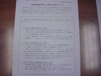 大規模地震が発生した場合の対応について