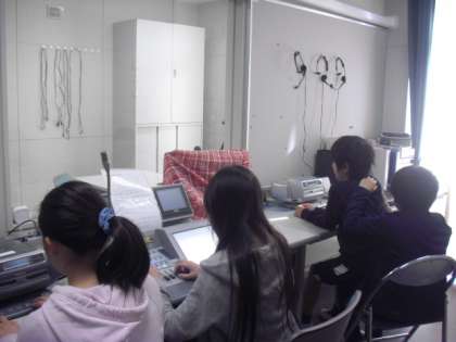 専科棟の新くじらドームの2階にある放送室で、毎日朝の放送を流しています。