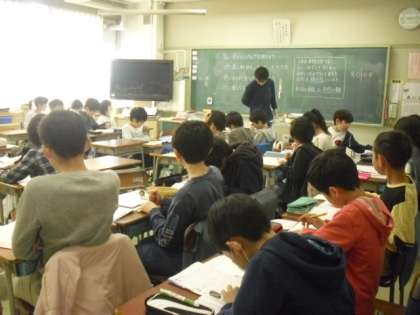 学習に入る前の準備テストをもとに、自己の学びのスピードなどに合わせた習熟度別指導を行っています。2クラスを3つのグループに分割しての学習です。