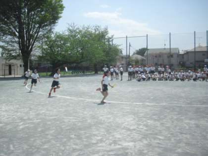世田谷区ではより質の高い指導内容として、発展的に学習する内容を明示しており、短距離走、リレーでは効率の良い走り方を知り、高いスピードを維持しながら走ったり、バトンパスをしたりすることにも取り組んでいます。