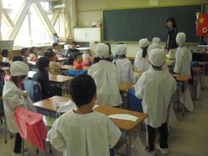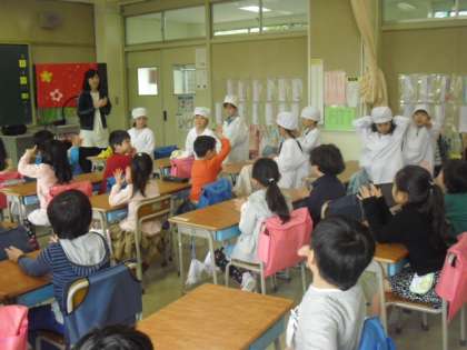 1年生も自分のことは自分でできるように、白衣を着る、たたむ練習をしていました。